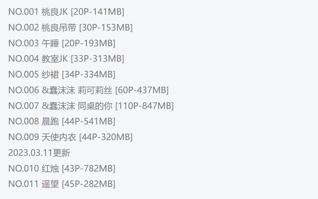 你们有没有听说过桃良阿宅这个人啊?我最近迷上了她的照片集,每一张都好美啊!似乎她和蠢沫沫很熟,总是在她的作品里出现,看来两人私下肯定也挺好的。虽然她刚进入这个行业不久,但我预感她的前途一定不可限量,她拍的照片风格越来越像蠢沫沫了,甚至连膜拜的小伎俩都学会了呢,真是太有才了。全套文末获取~
